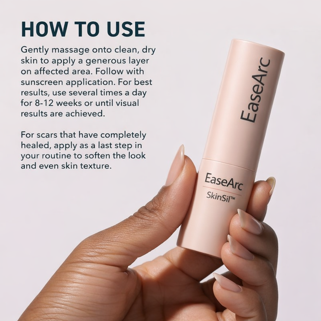 With just a few moments a day, SkinSil™ helps support the skin’s appearance by forming a lightweight, breathable silicone layer that locks in moisture and encourages gentle massage. Consistent use helps soften the look of scar texture, improve overall smoothness, and support healthier looking skin, so your skin feels more comfortable, refined, and confident.